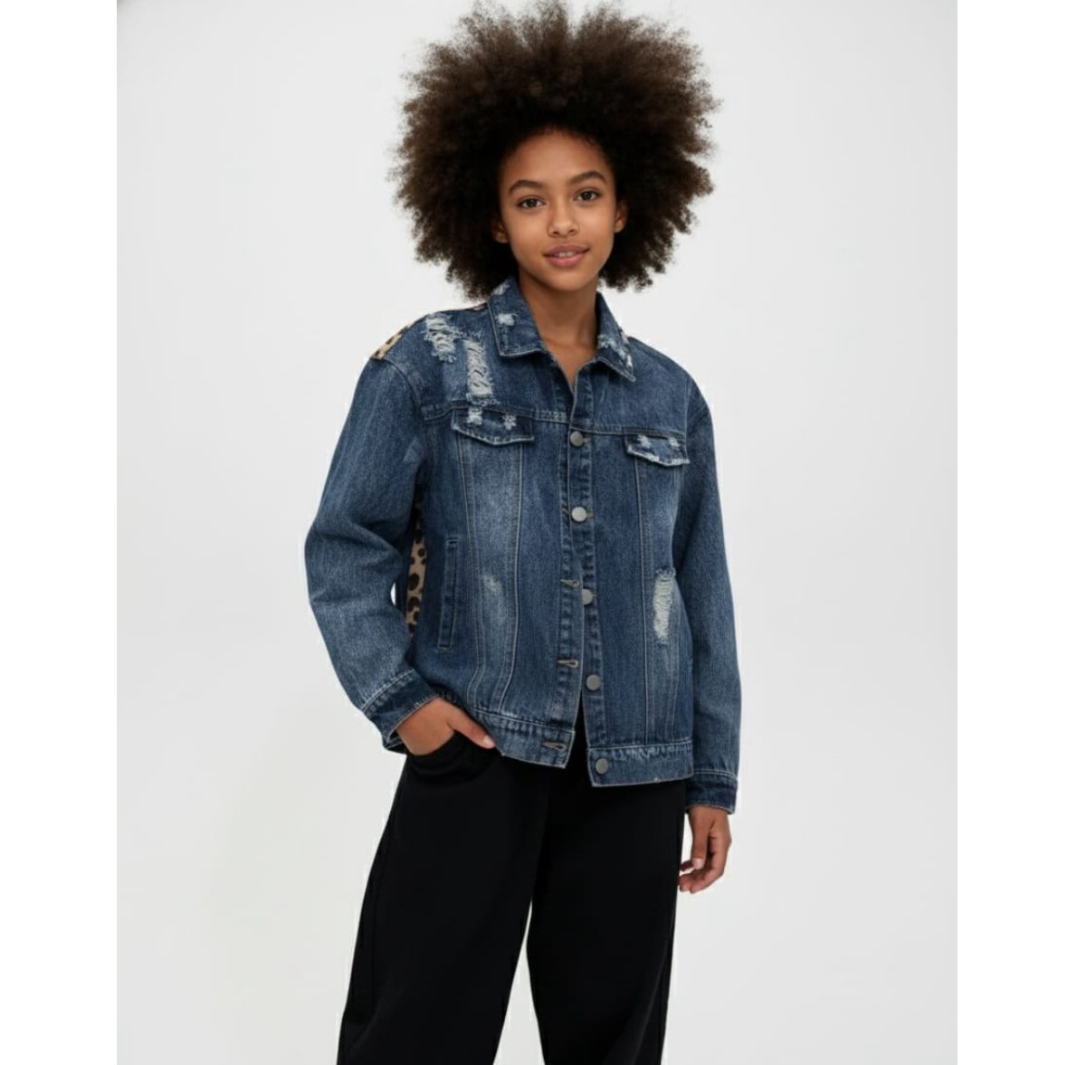 Fabricada con denim resistente, esta cazadora garantiza durabilidad y confort. Su suave interior mantiene a tu hijo cómodo durante todo el día, mientras que el estampado animal print le añade personalidad a cualquier outfit. La prenda está diseñada para resistir las actividades diarias de los niños, asegurando que conserve su forma y color con el tiempo.